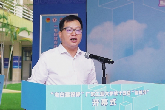 陈卓武宣布开幕。“产教融合再深化,竞赛体系更完善,规模影响创新高。”他肯定了“鲁班节”十五年来在学术科技竞赛上的育人成效,并寄语学生:“在竞赛中打磨专业本领,在实践中厚植家国情怀,未来在绿色建造、数字孪生、机器人建造等新赛道上,以智慧赋能传统行业,成为未来中国建造的中流砥柱。”今年是电白建设冠名赞助“鲁班节”的第二年,99级建筑工程专业校友廖国维对进一步深化校企合作、推动产学研用深度融合充满了信心,他期待发掘更多志同道合的青年才俊,与电白建设共绘发展蓝图。土木工程专业大四学生戴凯瑶作为往届参赛代表发言:“这是我参加‘鲁班节’学术科技竞赛系列活动的第四个年头了,从纸面上的设计图,到用竹皮制作手工模型,这种‘做中学’的经历,远比课本更令人难忘。”