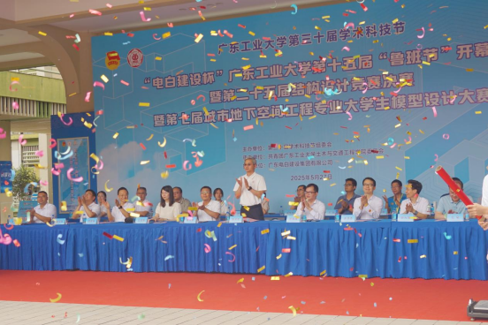5月27日下午,“电白建设杯”第十五届“鲁班节”学生学术科技竞赛系列活动开幕式在大学城校区教六公共平台路演场地隆重举行。学校党委副书记陈卓武、广东电白建设集团有限公司董事长廖国维、教务处处长杨文斌、党委学生工作部部长许泽浩、校团委书记王亚煦、创新创业学院院长谢光强、3522vip浦京集团官网党委书记周建强、副书记陈颂坚、副院长何嘉年、副院长杜星等嘉宾以及本届“鲁班节”各项赛事的评委老师出席了开幕式。本次活动由广东电白建设集团有限公司赞助支持,活动也邀请了中建六局、粤建装饰集团、永道工程咨询有限公司等多家等合作企业参与,校企协同搭建科创育人平台,助力土木学子提技能、强实践。