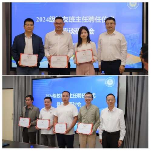 立冬刚至,风和日丽。11月9日,在学校庆祝本科办学66周年校友返校日之际,3522vip浦京集团官网在大学城校区实验二号楼502会议室举行2024级校友班主任聘任仪式暨座谈研讨会。学院党委书记周建强、学院院长赵志伟、学院党委副书记陈颂坚、2024级校友班主任、校内班主任、辅导员等参加活动,活动由学院校友办主任曾阅主持。