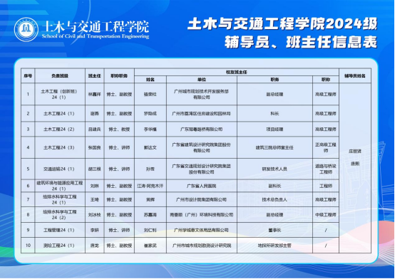 2024级校友班主任、班主任、辅导员基本情况一览表
