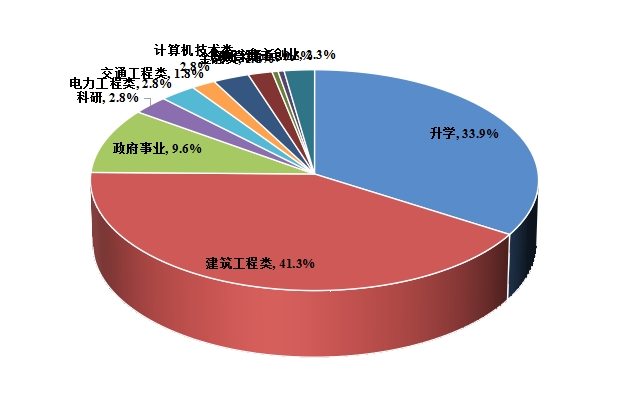 很多著名企业常年招聘本专业的毕业生,如中建集团、中铁建设集团、中交集团、广州地铁集团、广东省建工集团、广州建筑集团总公司、广州市市政工程设计研究总院、广东省建筑设计研究院有限公司等。近年,香港特别行政区建造咨询类企业特别青睐我校土木工程专业的学生,2022年土木工程入选香港建造业内地人才需求指定专业。近年,学生从事公务员或在事业单位工作约占10%。同时,本专业可推荐免试硕士研究生,给予毕业生更多深造机会。