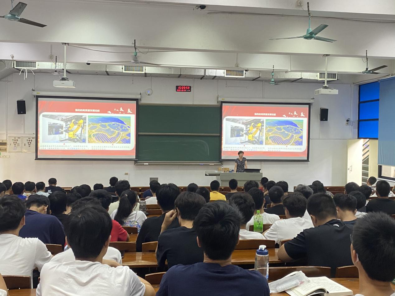 9月26日下午,学院院长刘锋以“伟大时代的历史跨越”为题为我院2021级土木工程1-4个班的学生了新学期第一堂思政课。刘锋从经济、政治、文化、生活等方面介绍新时代取得的新成就,阐释如何用好“五个战略性有利条件”走好“五个必由之路”。鼓励同学们一是要学好专业知识,苦练专业本领,二是要勤学好问,刻苦专研,三是要注重实践,注重创新,不断增强志气、骨气、底气,坚信我们必将在中华民族伟大复兴不可逆转的历史进程中,继续创造奇迹。
