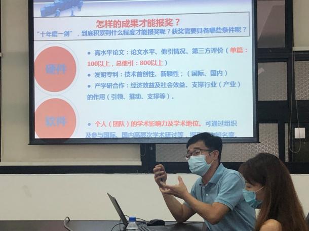 刘鑫副院长从科研奖项的重要性以及报奖的总体情况方面对学院的报奖工作给出了指导性建议。何旭彬科长从科技奖申报的准备,材料的撰写以及注意事项等细节方面给予了全面的指导与解读,会上解答了老师关心和不解的相关问题,引起了大家热烈讨论。交流指导会上刘锋院长、郭永昌副院长分别对学院科技奖申报工作的下一步工作做了部署,感谢科研院一直以来对3522vip浦京集团官网的支持。