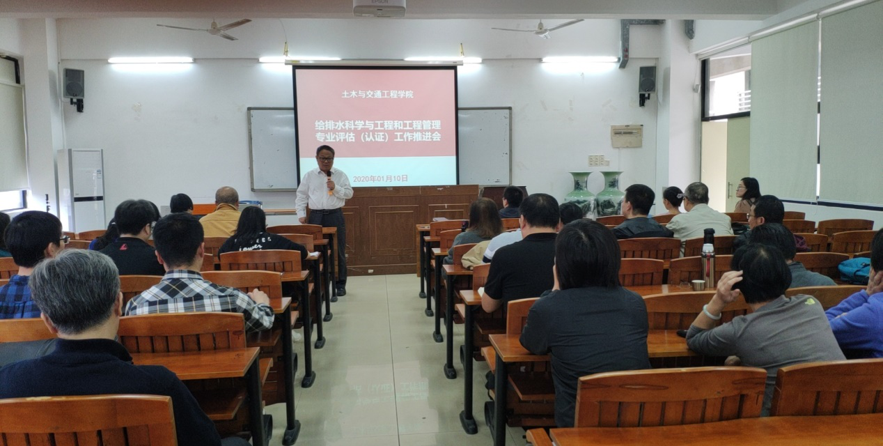 为做好我院给排水科学与工程专业评估(认证)和工程管理专业复评的准备工作,2020年1月10日上午,我院在实验二号楼520会议室召开专业评估(认证)工作推进会。学院领导班子成员,给排水科学与工程和工程管理专业全体教师、学院教务办和实验室相关教师参加了会议。会议由副院长何嘉年主持。