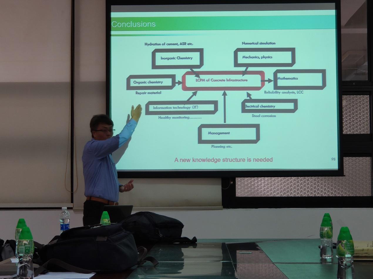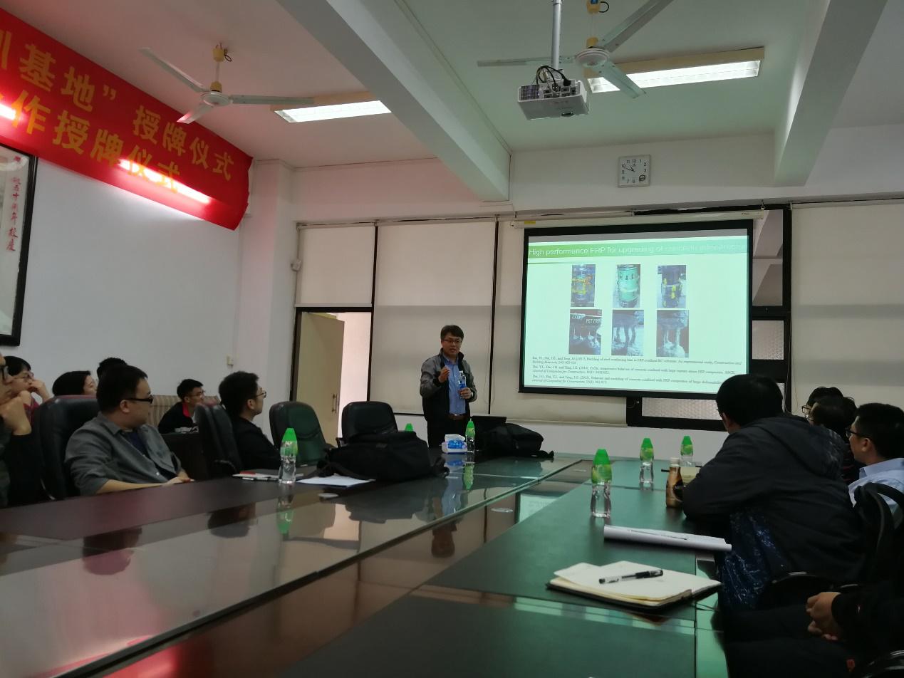2019年12月14日上午10:30,香港理工大学的戴建国教授在我校实验二号楼502会议室为土木工程专业的老师及同学系统地介绍了新型土木工程材料在混凝土结构维护管理中的研究和应用,取得了极为良好的反响。