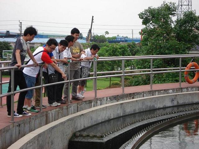 下午,调研组到了中山黄圃水务有限公司污水处理厂参观学习,公司领导张喆总经理热情地接待了我们,先是召开了一个交流会,公司的工程师们、与会老师对于学生培养方面交换了意见,使大家对研究生培养和应具备的素质进一步有所了解。随后我们参观了污水处理系统,在工程师的介绍下对从污水收集到处理、排放的整个流程有所了解,观看了污水处理的全过程:首先经过粗、细格栅滤除杂质,再进行活性细菌处理、物理沉降等,最后是紫外线消毒,达到排放标准。在这个干净美丽得就像是一座花园的处理厂区,我们深深感受到环境保护的治理理念和运行管理的科学性、有效性。