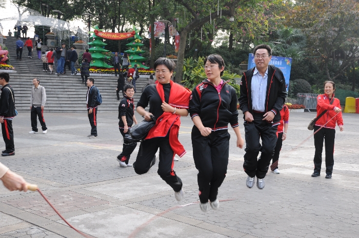 爬山比赛以工会小组为单位,以各小组全体会员全部到达记录团体成绩。大家先后顺利抵达山顶公园鸣春谷门口。在山顶公园,部门工会还组织了多项有意义的趣味活动,有踢毽子、跳大绳、玩飞碟、玩扑克牌等。