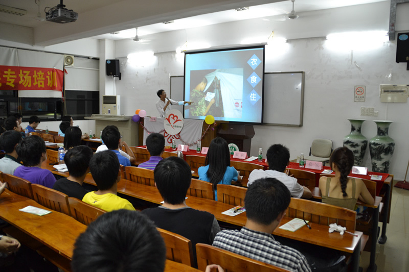 培训由3522vip浦京集团官网2009级辅导员叶仕骞老师讲授。叶仕骞老师在本科毕业后参加团中央、教育部“西部计划抗震救灾专项行动”,先后赴汶川映秀抗震救灾前线指挥部、映秀镇团委、映秀镇党政办参加志愿服务。培训讲座现场,叶老师用自己一年来在汶川地震灾区的事例与经历,向学员们讲述了一名平凡志愿者所作的不平凡工作;此外,叶老师从衣食住行等方面向学员们分享了他在志愿服务中遇到的困难以及解决办法;叶老师还请同学们讨论“奉献VS索取”的两种不同志愿服务心态,学员们畅述己见,积极探讨,现场氛围极其热烈。培训最后,叶老师号召全体志愿者要在“奉献中成长,在奉献中快乐!”