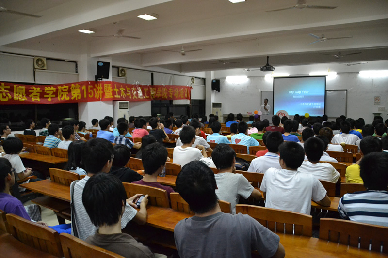 培训讲座由王亚煦老师主持。王老师首先向全体土木学院青年志愿者介绍了学校志愿者学院的授课情况以及招收学员的程序,她希望土木学院全体2012级新生能在四年大学生活中通过学校和学院提供的各级平台主动汲取志愿服务知识,做一名具有专业服务技能的工大V仔,发扬“奉献、友爱、互助、进步”的志愿者精神。