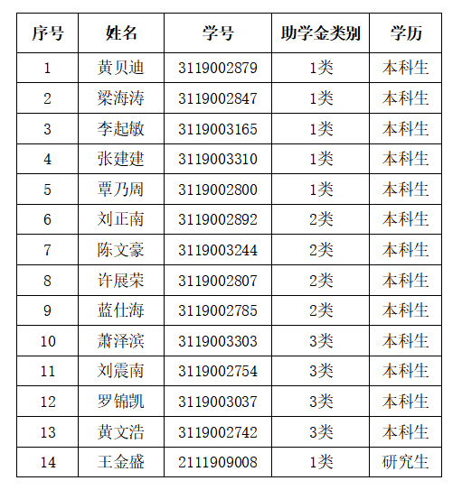根据学校《关于评定2019年新生助学金的通知》有关工作要求,经学生申请,学院初审,现将学院拟推荐名单公示如下: