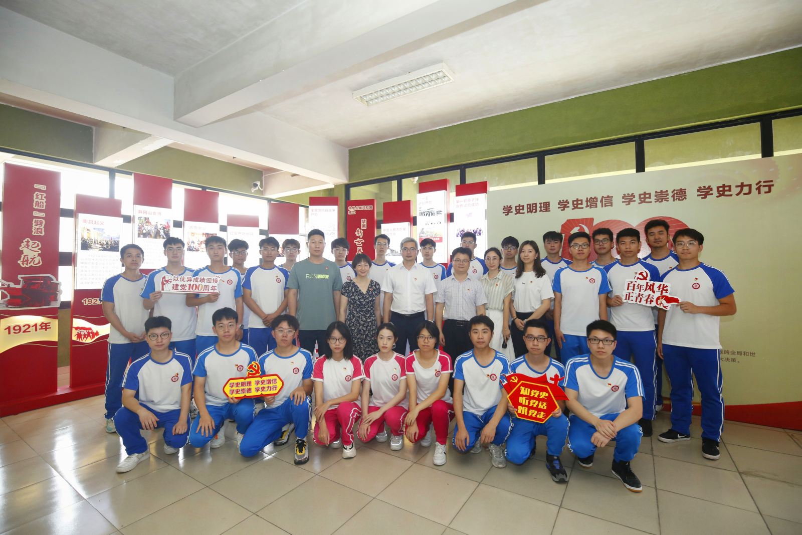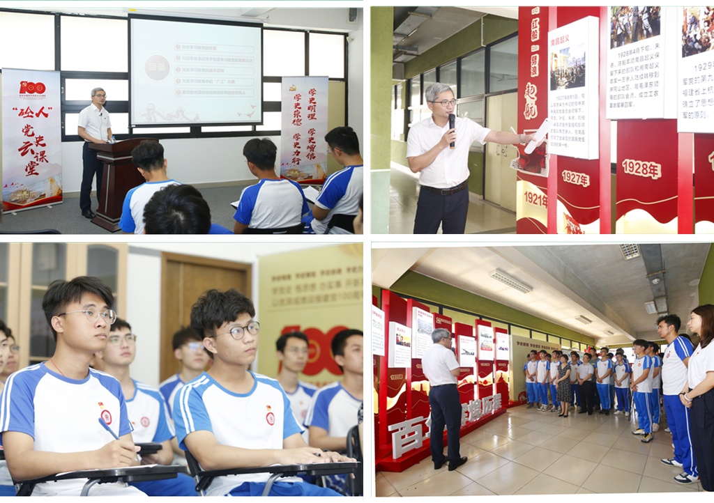 党课中,副校长陈卓武还与师生党员一起来到5楼平台“百年辉煌历程 赓续精神血脉”党史展前,结合党史上的重要时间节点,从红船劈浪起航到新中国成立擘画新世界、从改革开放的翻天覆地再到中国特色社会主义进入新时代,与大家一起回顾了中国共产党的百年历史。最后,他殷切地希望青年学生党员要培育和践行爱国主义情操,树立远大理想,进一步优化和丰富知识结构,积极投身实践,以更加优异的成绩迎接与庆祝建党100周年。