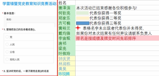 3月13日晚,学院团委根据学院党史学习教育工作方案,举行了“以我之名,逐锋而行”学雷锋暨党史知识竞赛。本次竞赛为线上举行,近200名学生参与其中。比赛期间,同学们积极参与答题,绝大部分同学都取得了不错的成绩,活动结束之后积极在群上发表个人体会,共同讨论学习雷锋精神以及党的相关知识。通过这次活动,同学们进一步了解了雷锋事迹,提高了党史学习兴趣。