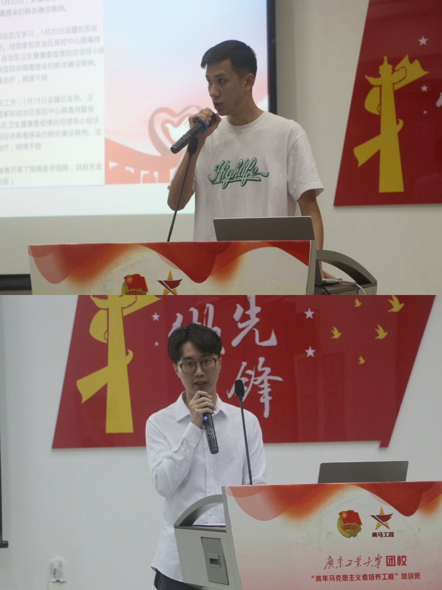 3月19日晚,第一场分享会在教6-304进行,主讲人为学院优秀抗疫志愿者代表2017级阿迪力江师兄、梁志城师兄。两位师兄结合影像资料讲述了他们在抗击新冠肺炎疫情期间的志愿服务经历。阿迪丽江师兄面对各种困难没有退缩,而是选择迎难而上,为家乡顺利“解封”贡献了一份力量,他表示疫情面前没有民族之分,唯有民族团结、众志成城才能共克时艰。梁志城师兄有着丰富的志愿服务经历,疫情暴发后与同学共同发起“口罩珠海”项目,联合社会各界爱心人士,为环卫工人筹款购买口罩、消毒液等物资,他鼓励同学们多去了解、关心他人的处境,主动打破不同身份人之间的隔阂,为弱势群体和身处困境的人们提供一些帮助和关心,传递爱心,为这个社会进步贡献自己的一份力量。